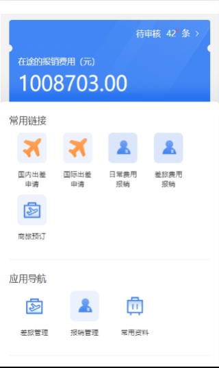 手機移動端可同步展示及操作國際國內(nèi)出差申請、日常費用報銷、差旅費用報銷等功能,按“我提交的”、“我已審的”分類顯示用戶的差旅單據(jù),同時匯總顯示當前登錄用戶所有在途的報銷費用金額。實現(xiàn)員工報銷更靈活,不用再耗時跑腿,提起手機輕松操作即可完成報銷、差旅預定等。