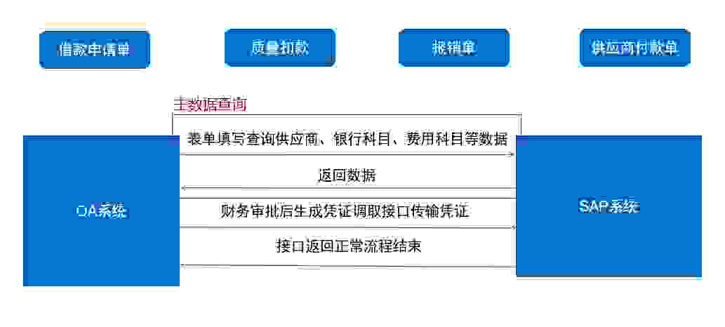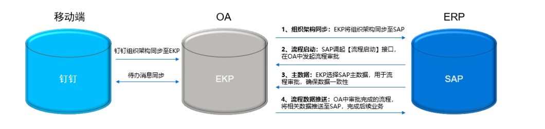 ? 流程數(shù)據(jù)推送:用戶在OA中發(fā)起并進(jìn)行審批,流程審批通過(guò)后調(diào)取SAP接口將相關(guān)數(shù)據(jù)推送至SAP,由SAP完成后續(xù)的業(yè)務(wù),比如訂單生成,憑證記賬等。