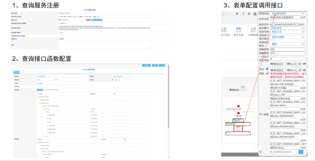 ? 主數(shù)據(jù):SAP提供【對(duì)應(yīng)主數(shù)據(jù)查詢】接口,EKP中通過(guò)TIC集成中心完成查詢接口的配置,并在流程表單中使用該查詢接口進(jìn)行數(shù)據(jù)調(diào)??;