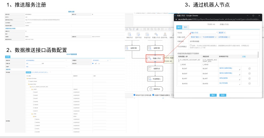 step3:審批通過(guò)后,通過(guò)機(jī)器人節(jié)點(diǎn)傳輸信息,并回寫(xiě)部分SAP數(shù)據(jù)至EKP
