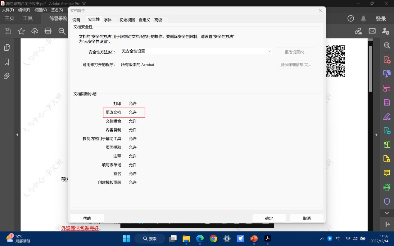 合同審批初始,員工上傳WORD文檔,通過最后審批節(jié)點后,自動轉(zhuǎn)換成限制修改的PDF格式以供下載或打印。合同正文PDF下載后,通過代碼參數(shù)對PDF文件屬性進行限制,實現(xiàn)限制PDF編輯功能。