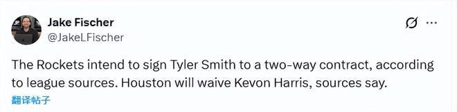 北京時間12月3日,據(jù)NBA記者杰克-費舍爾報道,火箭隊計劃與自由球員前鋒泰勒-史密斯簽下一份雙向合同,為了給這位新援騰出陣容名額,球隊將裁掉后衛(wèi)凱文-哈里斯。
