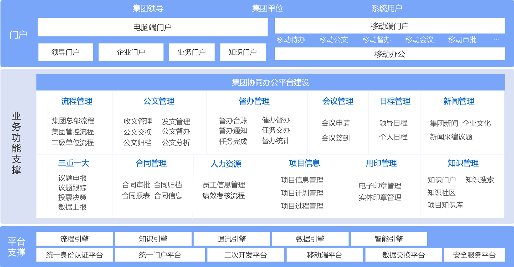 通過統(tǒng)一門戶、核心應(yīng)用電子化管控、統(tǒng)一流程、業(yè)務(wù)集接入、移動專屬門戶等應(yīng)用,實(shí)現(xiàn)集團(tuán)日常事務(wù)全覆蓋、業(yè)務(wù)效率數(shù)字化,助力國投智慧政務(wù)建設(shè)、提效領(lǐng)導(dǎo)決策力