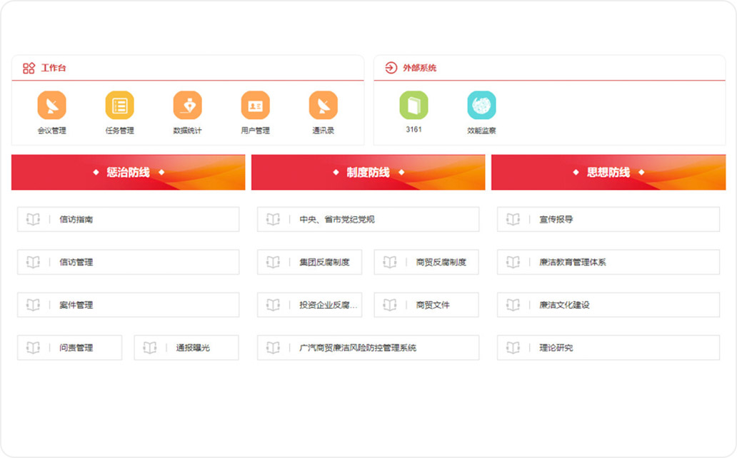 通過(guò)黨群E家的建設(shè),升級(jí)了黨組織在線、廉潔教育體系、廉潔風(fēng)險(xiǎn)防控體系等。強(qiáng)化了基層組織建設(shè),打造了更具保障的戰(zhàn)斗堡壘