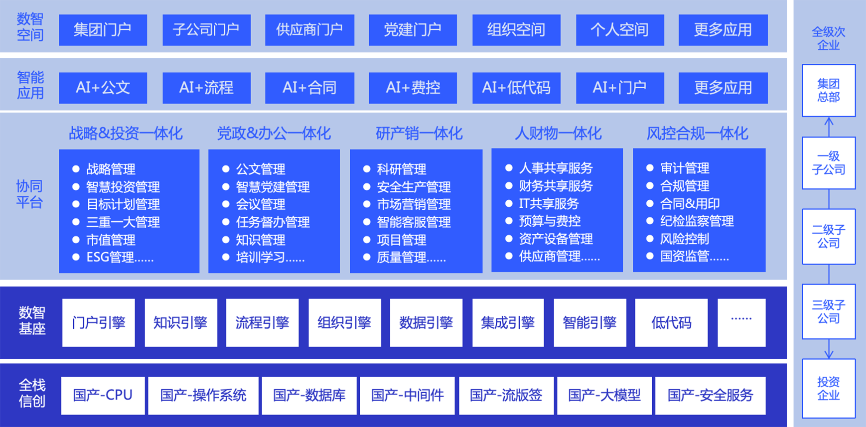 攜手藍(lán)凌打造集團(tuán)公司、分(子)公司、直屬企業(yè)三級單位一體化辦公平臺,實(shí)現(xiàn)跨層級跨部門的業(yè)務(wù)協(xié)作,實(shí)現(xiàn)“文、會、事”及各類業(yè)務(wù)審批的“掌上通”