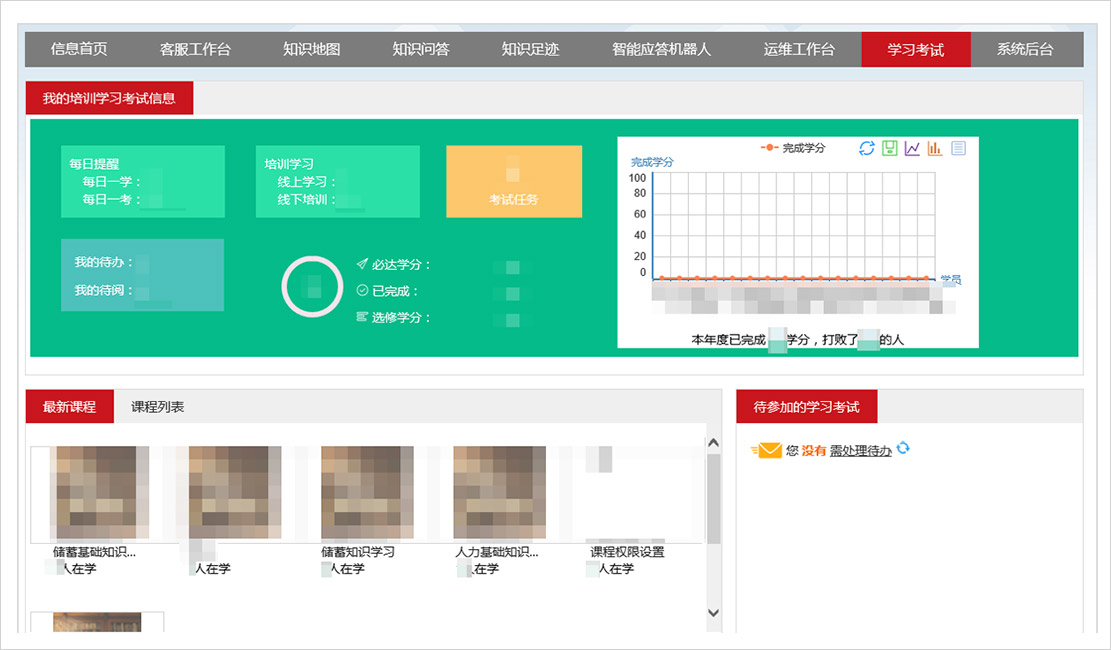 培訓管理人員還可以借助平臺給相應的客服人員推送“每日一學”“每日一考”等學習內(nèi)容;客服人員可以隨時隨地進行碎片化、游戲化(闖關(guān)、答題等)在線學習、在線考試