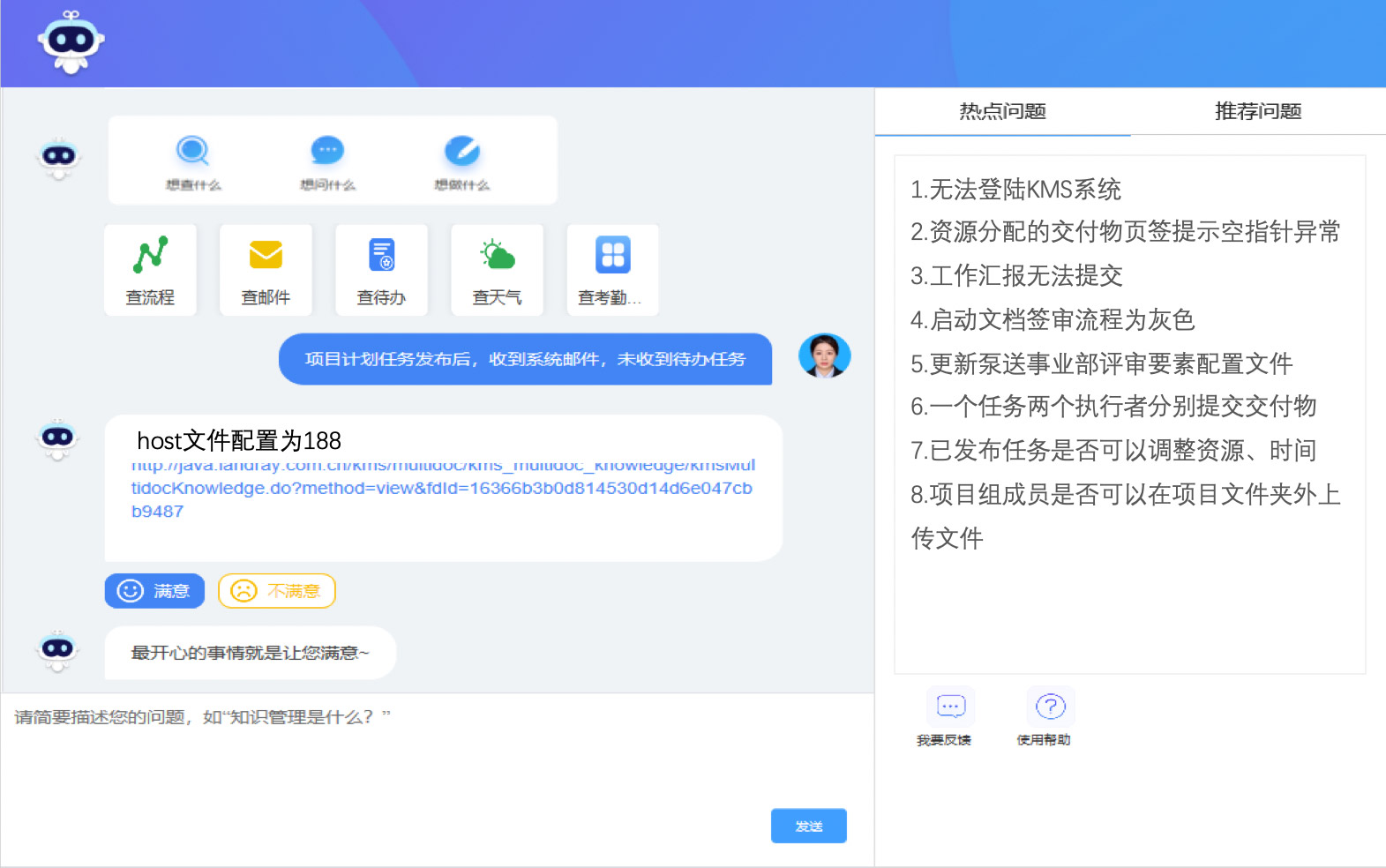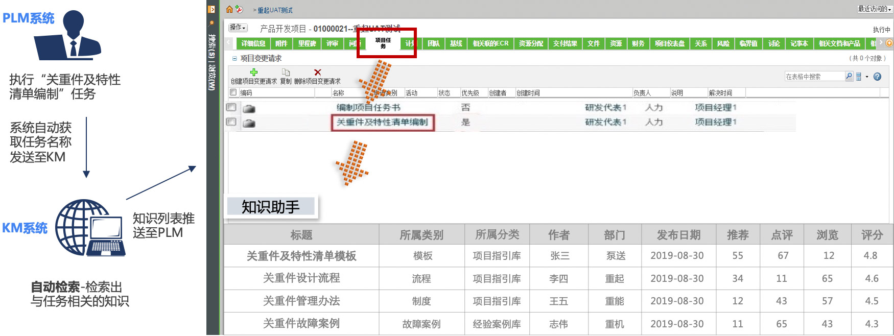當研發(fā)人員在研發(fā)業(yè)務系統(tǒng)中執(zhí)行任務時,知識管理系統(tǒng)可自動識別任務關鍵字,根據關鍵字自動搜索整理相關知識,推送知識至研發(fā)業(yè)務系統(tǒng)供研發(fā)人員查閱參考。