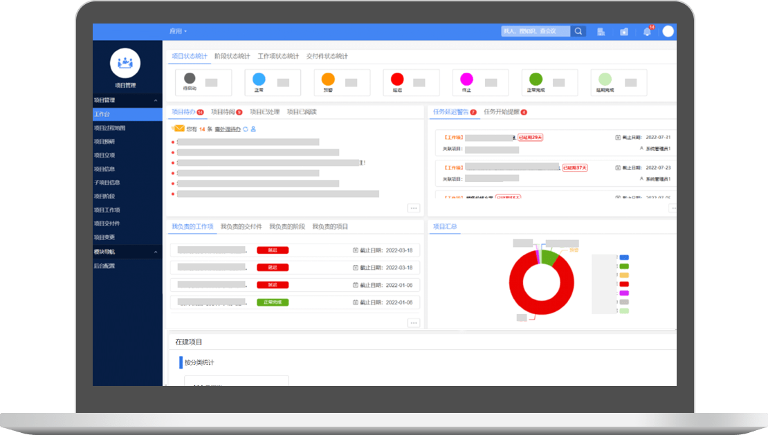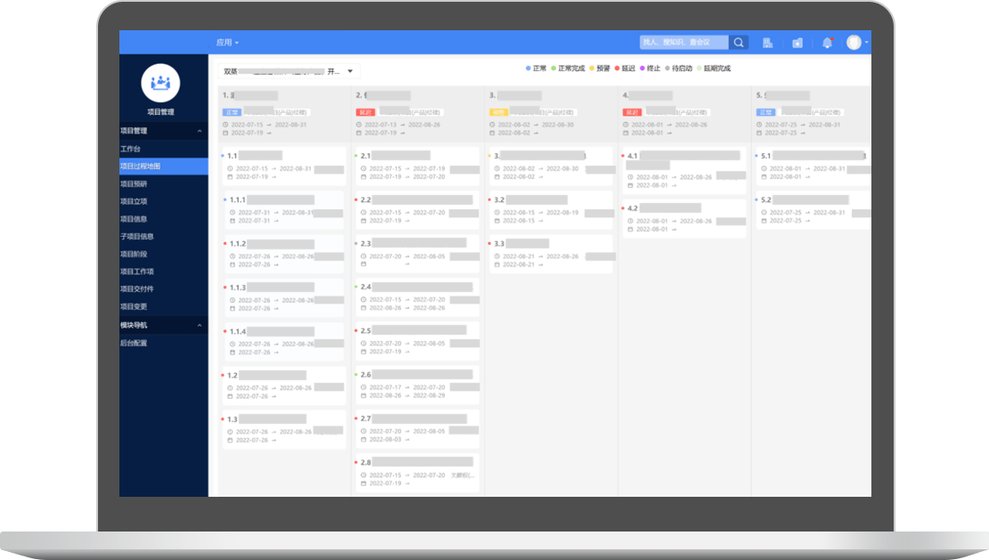 工作臺、項(xiàng)目地圖、項(xiàng)目計(jì)劃表可查看每個(gè)項(xiàng)目的進(jìn)度和具體項(xiàng)目的開發(fā)進(jìn)度,數(shù)據(jù)全面,支撐決策