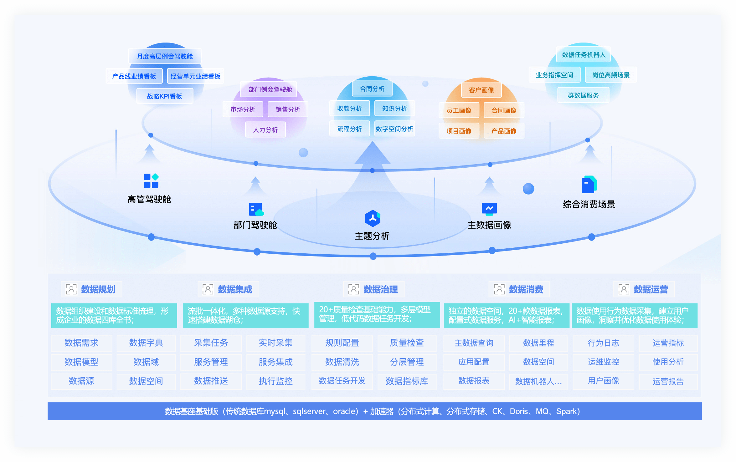 統(tǒng)一數(shù)據(jù)資管理平臺,實現(xiàn)數(shù)據(jù)規(guī)劃-集成-治理-消費-運營全覆蓋,打造數(shù)據(jù)資產(chǎn)管理閉環(huán),實現(xiàn)數(shù)據(jù)管理持續(xù)優(yōu)化。