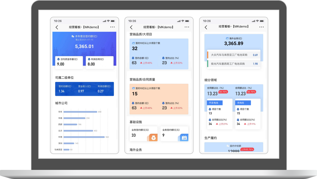 支持企業(yè)營銷與服務(wù)領(lǐng)域數(shù)據(jù)自動匯總、統(tǒng)計與分析,包括各區(qū)域簽單收入、服務(wù)收入、客戶滿意度等,助力業(yè)務(wù)決策與營銷調(diào)優(yōu)