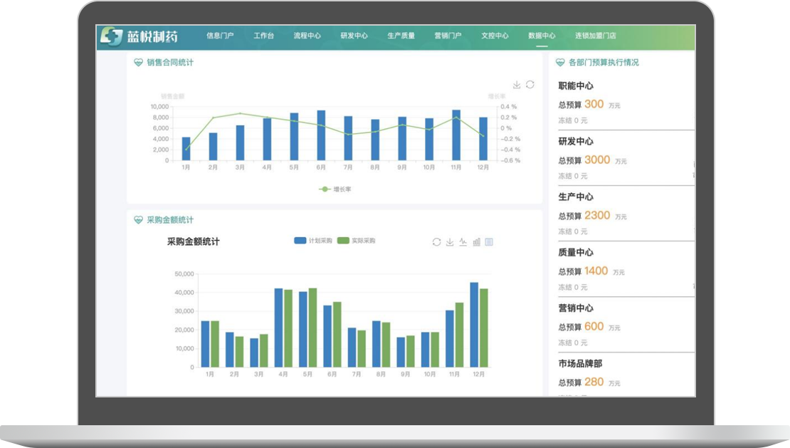 集成生產(chǎn)運營領(lǐng)域多個業(yè)務(wù)系統(tǒng)數(shù)據(jù),自動統(tǒng)計與分析,通過多樣圖表展示運營領(lǐng)域最新數(shù)據(jù),讓企業(yè)的日常生產(chǎn)運營更高效