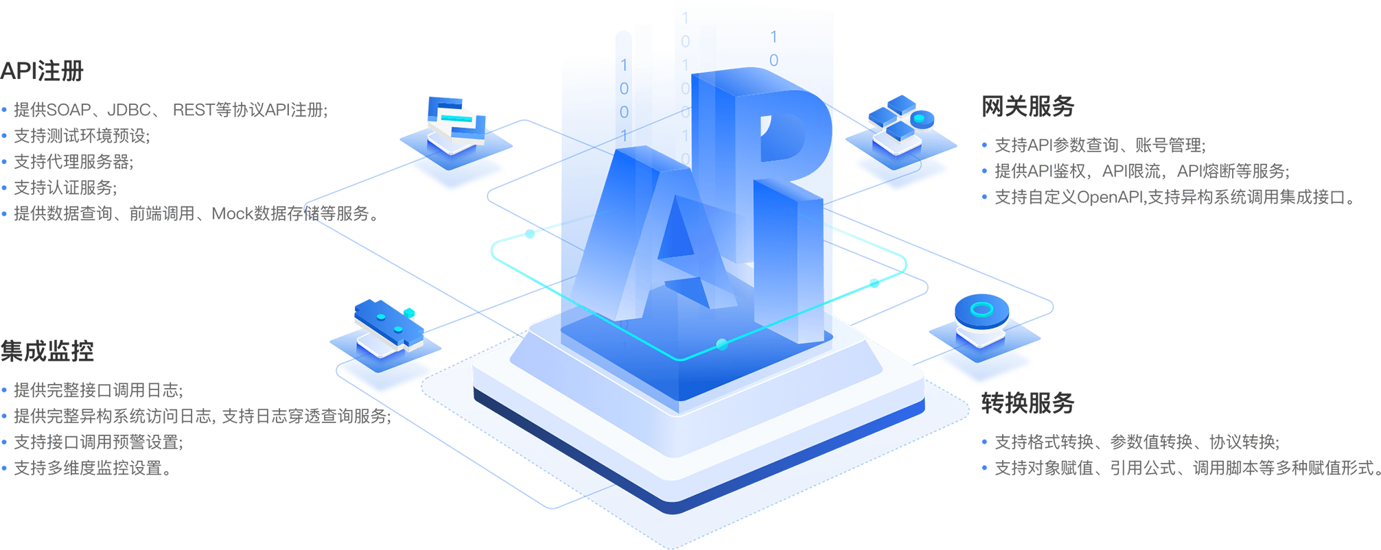 全生命周期管理API,統(tǒng)一接口管理,統(tǒng)一集成服務,沉淀集成價值。