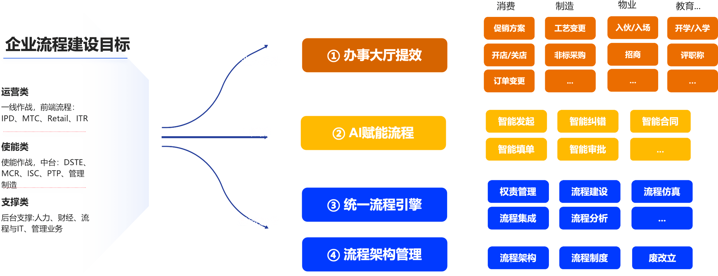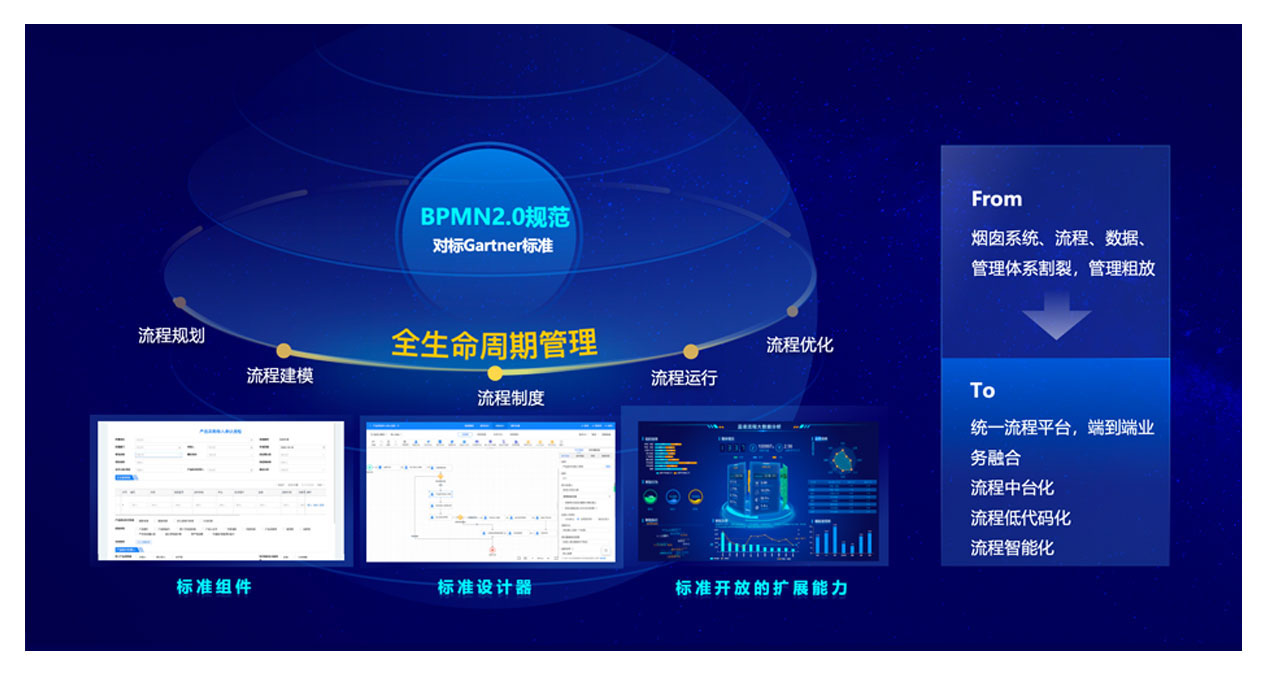 統(tǒng)一流程平臺(tái),規(guī)范流程設(shè)計(jì)和工具,提升標(biāo)準(zhǔn)化能力,為流程運(yùn)營降本提效。