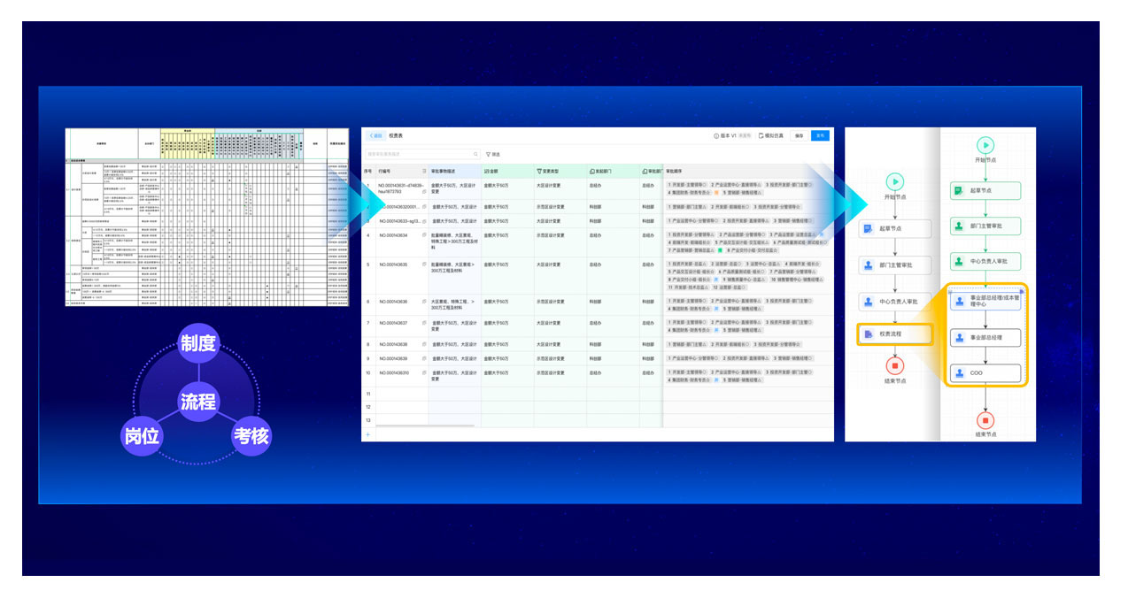 權(quán)責(zé)清單化,將制度、風(fēng)控、標(biāo)準(zhǔn)融入流程,保障管理與業(yè)務(wù)的融合,提效協(xié)同。