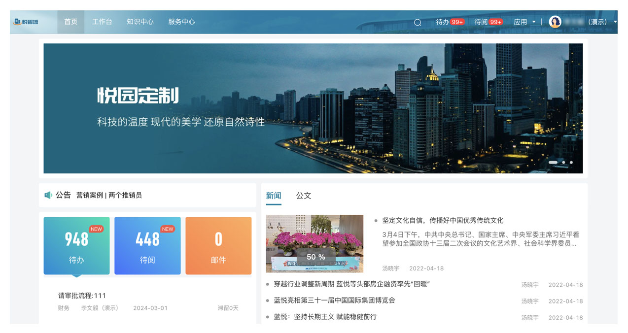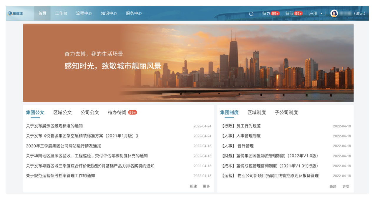 經(jīng)過持續(xù)建設(shè)與推廣,集團(tuán)門戶已實(shí)現(xiàn)多業(yè)態(tài)推廣全覆蓋,包括集團(tuán)總部、地產(chǎn)、物業(yè)、印力、美好家、嘉興事業(yè)部等,日均用戶訪問量超10萬次,助力審批省時(shí)10%。