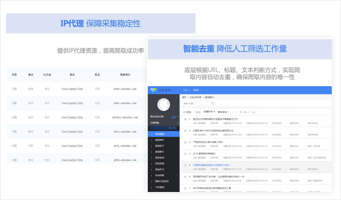 立外部情報資訊中心,對30+站點數(shù)據(jù)進行自動內(nèi)容爬取,覆蓋從行業(yè)供需和交易、國家監(jiān)管策略、企業(yè)運營管理、法律法規(guī)、同行動態(tài)五大方面的內(nèi)容形容外部知識庫,為業(yè)務(wù)線條提供有價值的知識服務(wù)