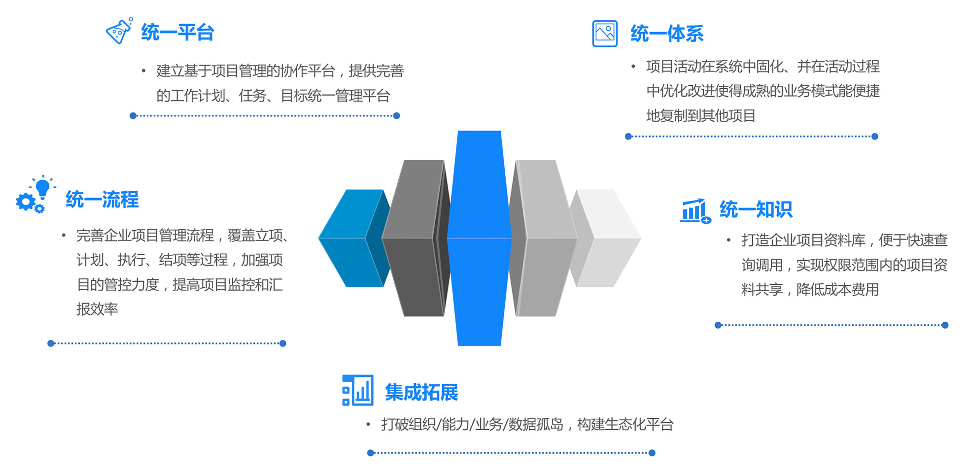 基于敏捷型組織項(xiàng)目管理需求,藍(lán)凌打造“統(tǒng)一平臺、統(tǒng)一體系、統(tǒng)一流程、統(tǒng)一知識、統(tǒng)一集成”的企業(yè)數(shù)智化項(xiàng)目管理平臺。