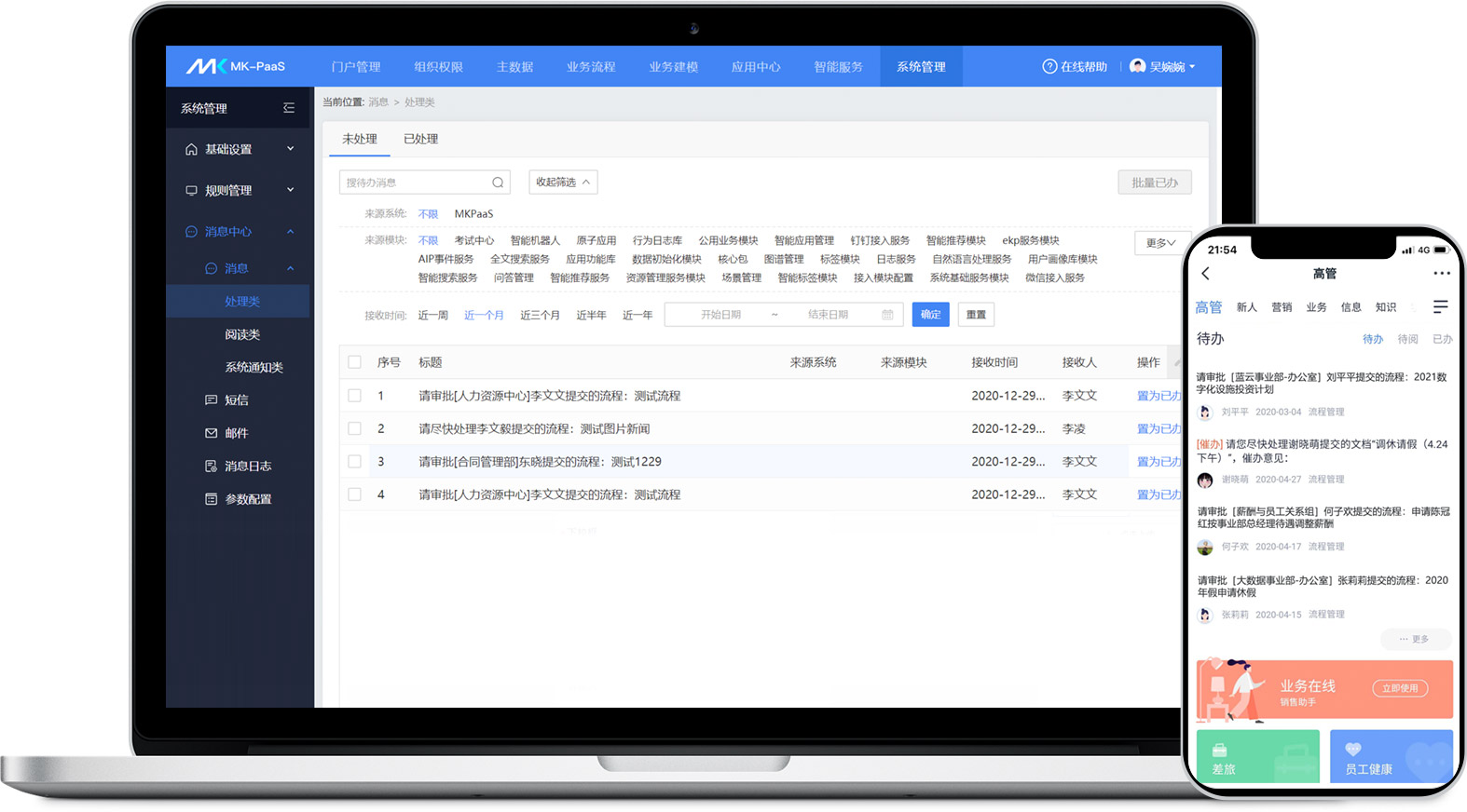 可視化表單與流程設(shè)計滿足個性化需求,支持異構(gòu)系統(tǒng)整合、去業(yè)務(wù)化、一人多崗、任意復雜業(yè)務(wù)流,數(shù)據(jù)集成、應用集成等,讓流程更靈活、更高效