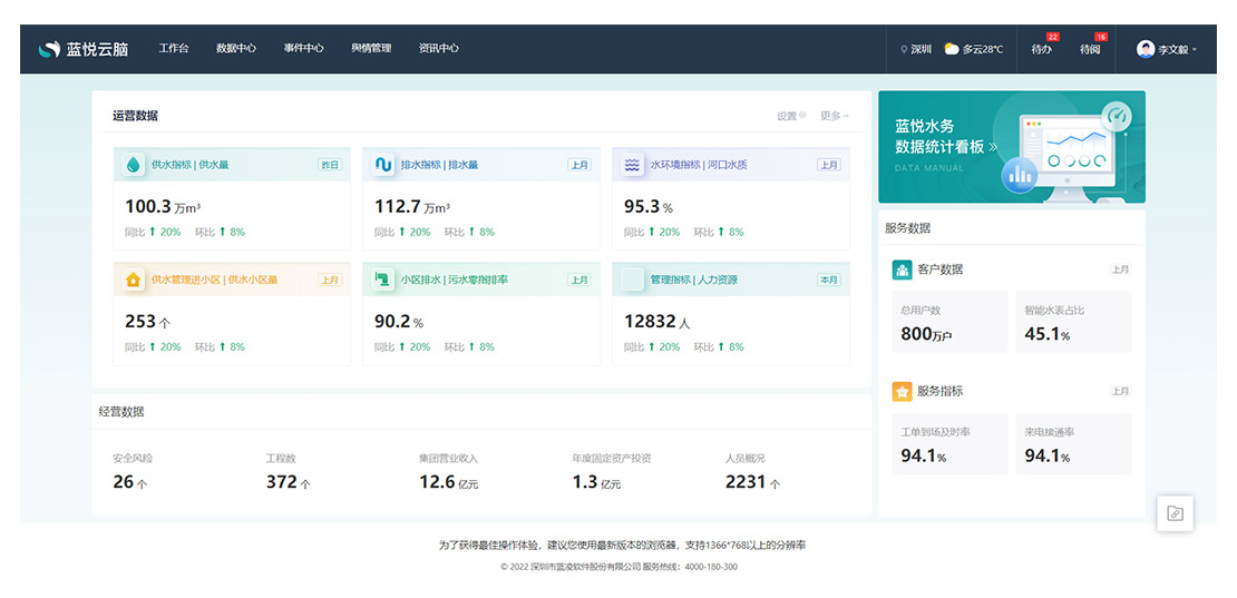 • 打造運營管理駕駛艙,滿足水務(wù)集團各級用戶的使用需求