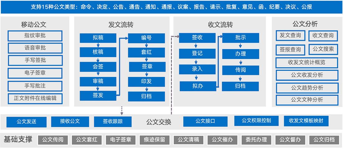 在線擬稿收文、發(fā)文、交換、移動簽批,讓政令高效流轉(zhuǎn),輔助工作高效開展
